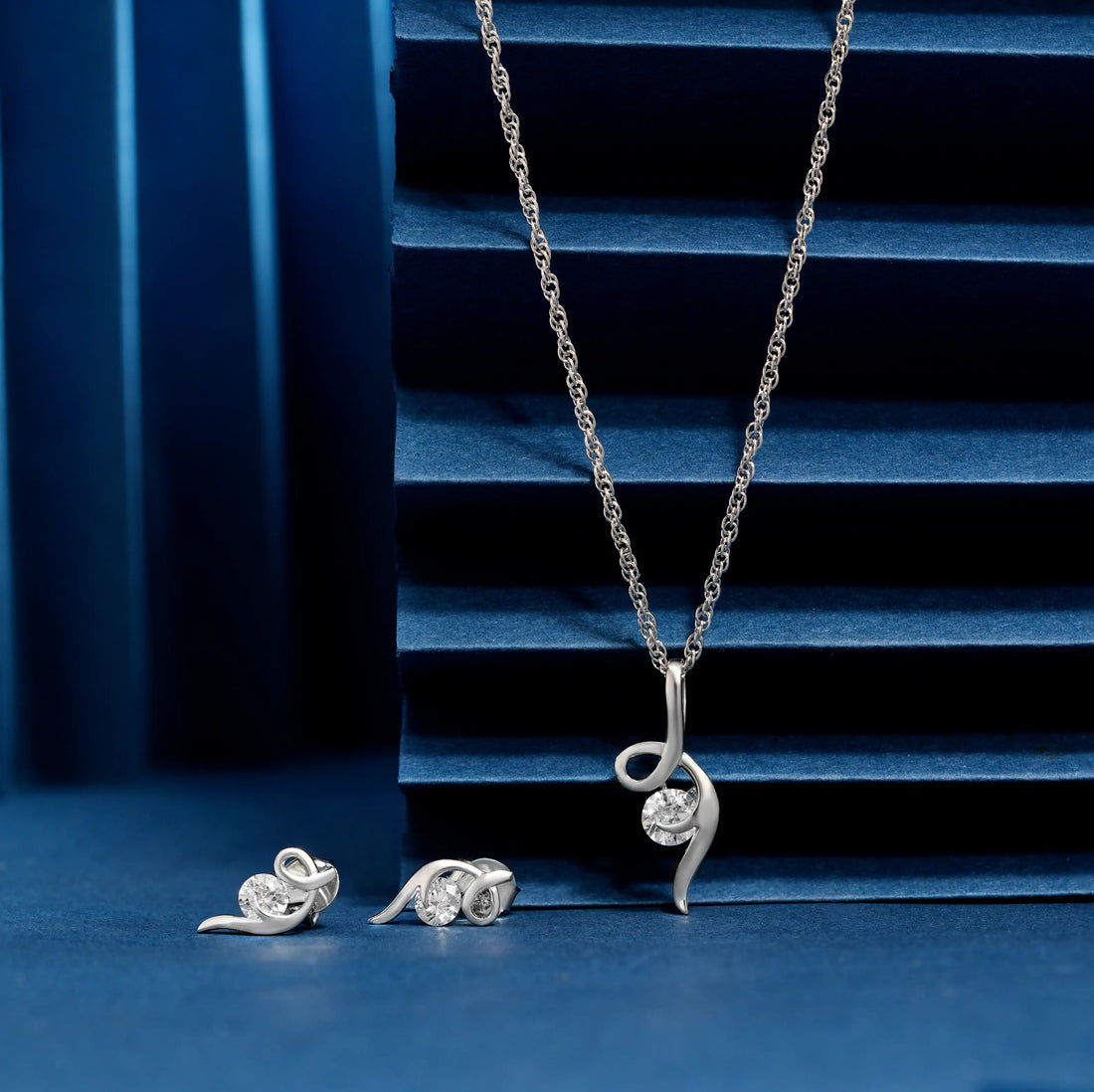 925 plain design with 2 drop dimond p.set