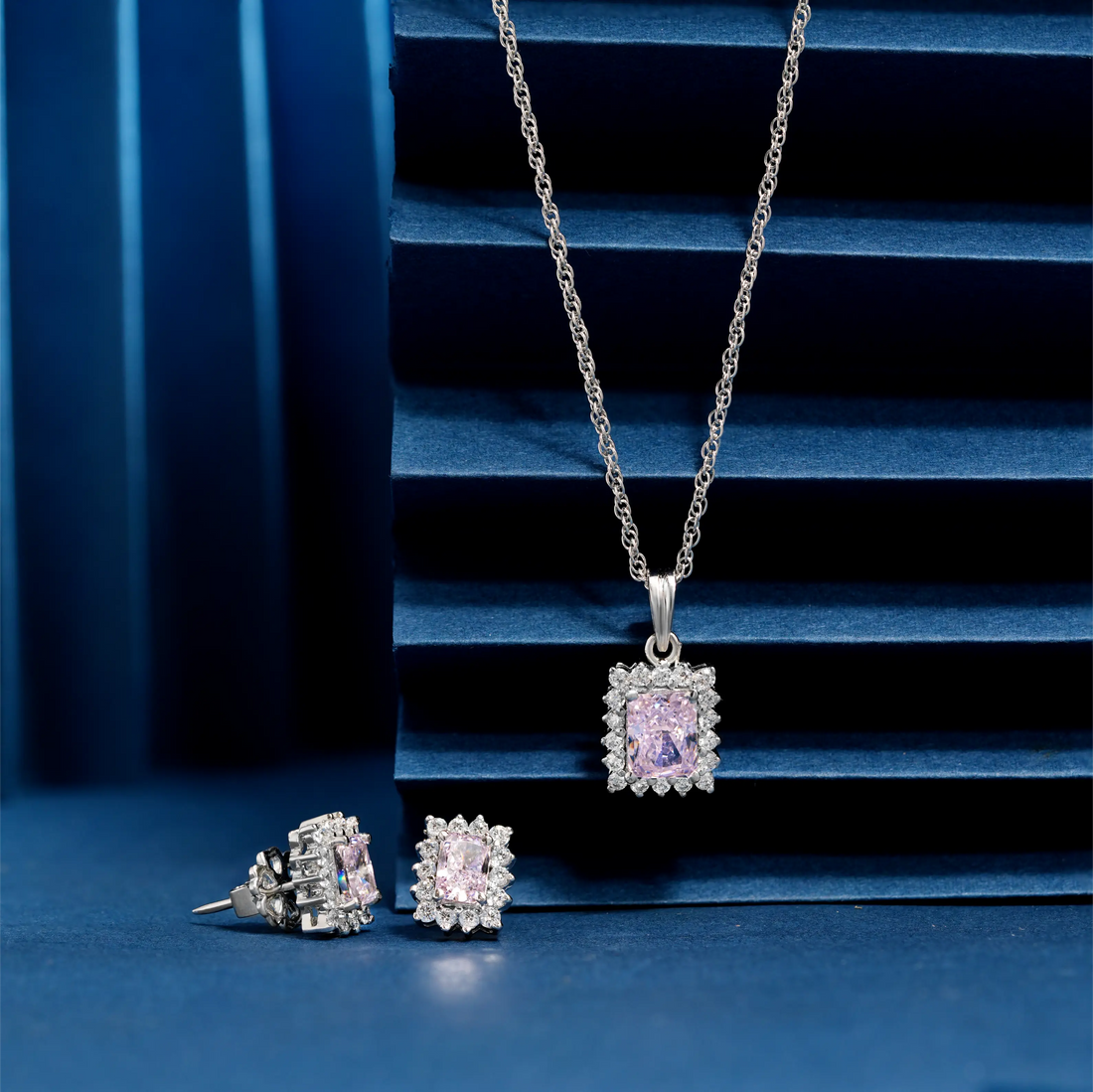 925 square light pink with cz stone chain p.set